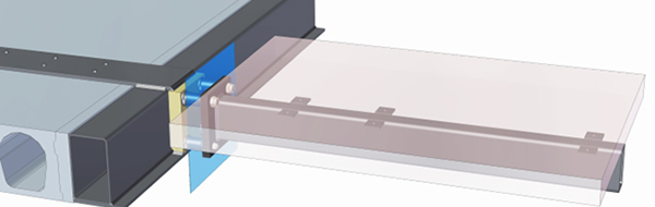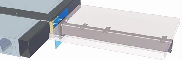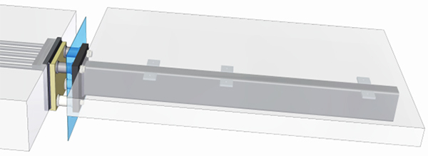 | Bildet viser komplett BWC 40 U-H system. Vertikal blå plate simulerer gummimembran for vanntetting. | ![]() |