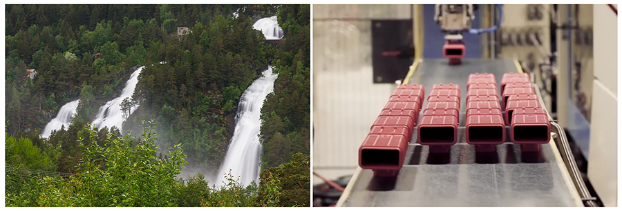 Vi bruker fornybar energi ved vårt produksjonsanlegg. Å velge vannkraft til produksjonsanlegget vårt er bare et av flere tiltak for å redusere vår miljøpåvirkning. Vannkraften vi bruker er produsert lokalt, og gir en ren, fleksibel og pålitelig strømforsyning.