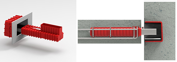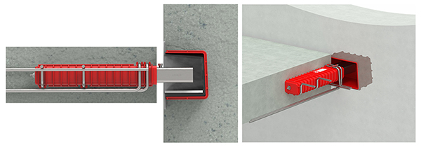 | TSS 102 | Inneholder lyddempning mellom innerrør/ytterrør og repos/vegg. Kapasitet opptil 96 kN i en 170 mm tykk (min.) repo, opptil 100 kN i en 200 mm tykk repo. | 100kN | ![]() |