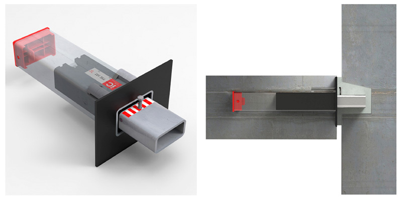 | TSS 102 | Inneholder lyddempning mellom innerrør/ytterrør og repos/vegg. Kapasitet opptil 96 kN i en 170 mm tykk (min.) repo, opptil 100 kN i en 200 mm tykk repo. | 20-25 dB | ![]() |